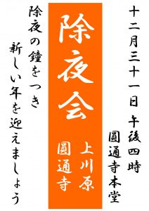 2022年12月31日 / 最終更新日時 : 2023年1月7日 tomonobu お知らせ 除夜会を行いました 大変寒い中、新型コロナウイルスの対策をとりながら、法要を行いました。お参りくださった皆さま、どうもありがとうございました。残念ながら、お参りできなかった皆さまのために、当日のおつとめ動画をアップしました。