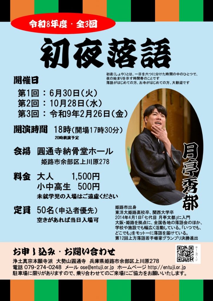 6月30日(火)午後6時より、第1回初夜落語を開催いたします。